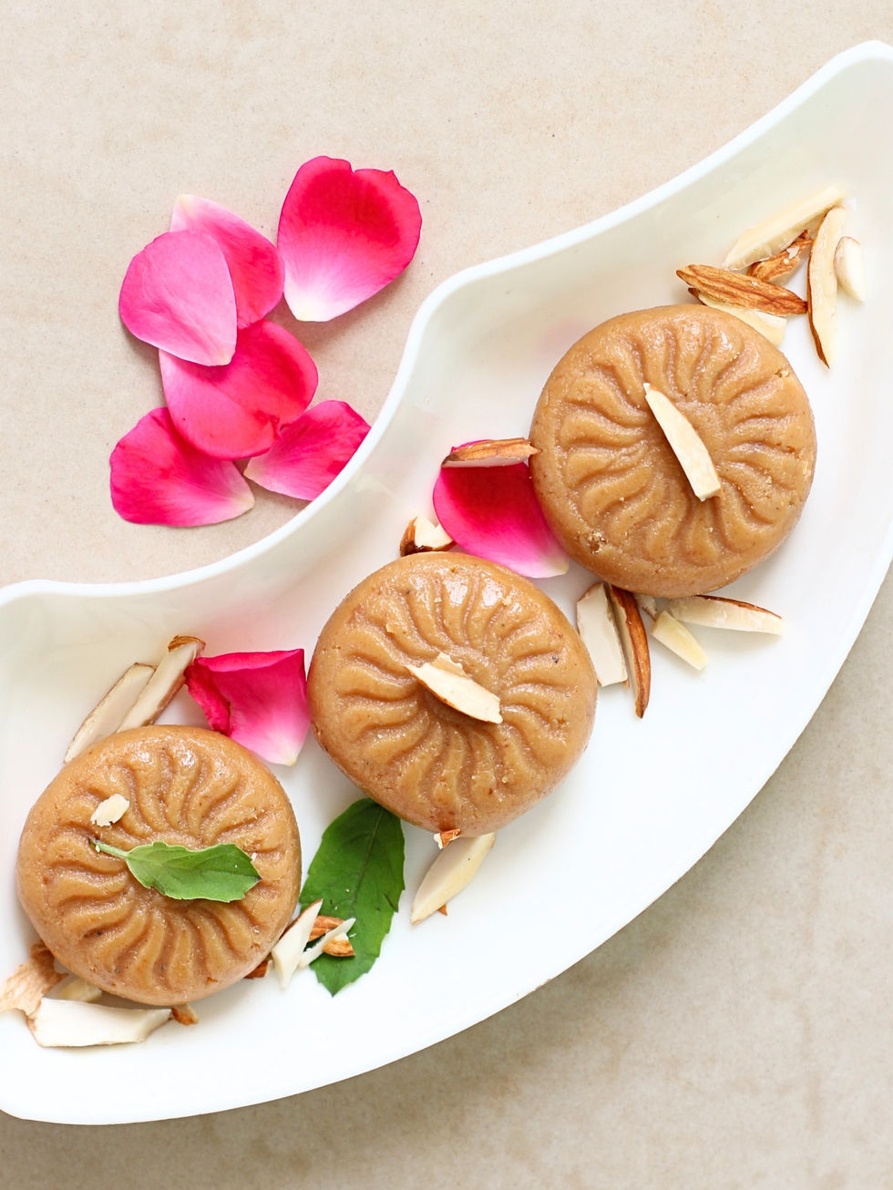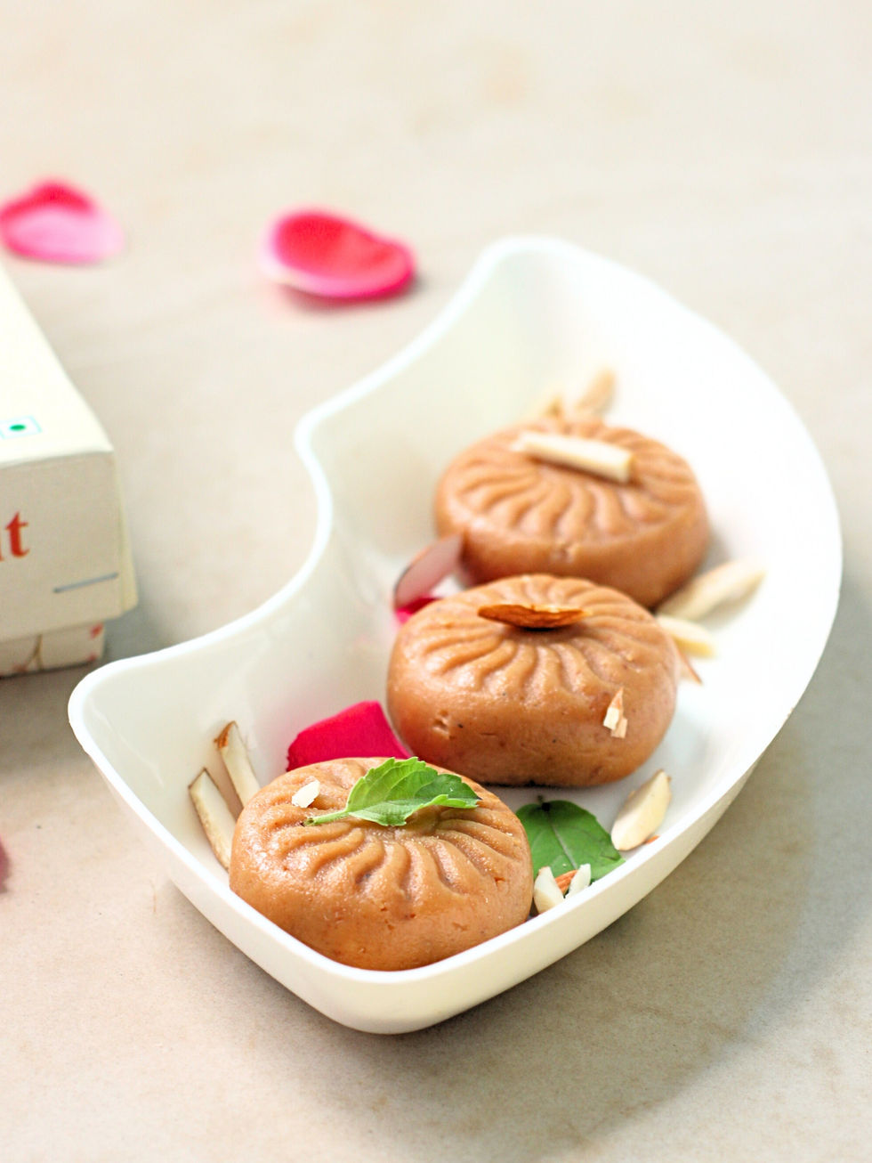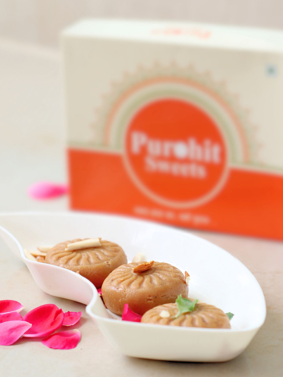 Khova Peda is a rich, traditional Indian sweet made from thickened milk, known for its soft texture and melt-in-mouth taste. A timeless treat perfect for all festive occasions.